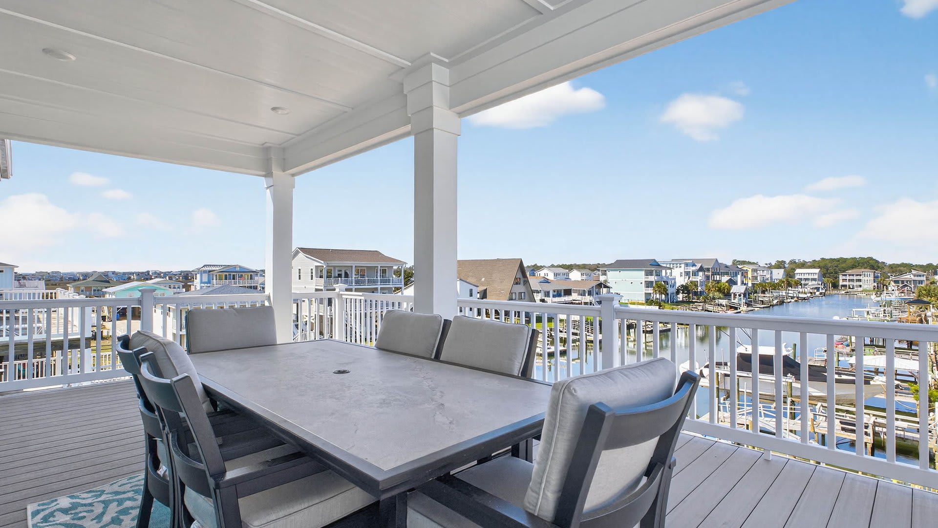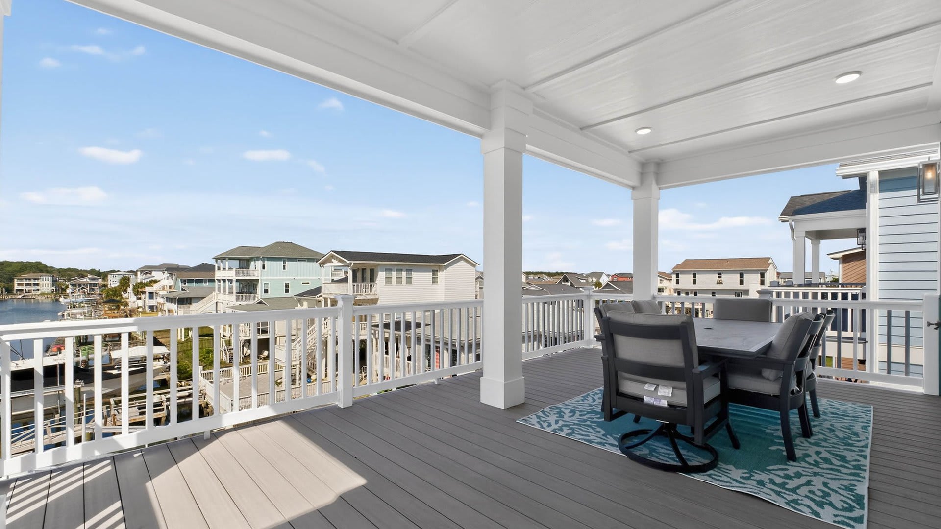 Multiple porches with ocean and canal views