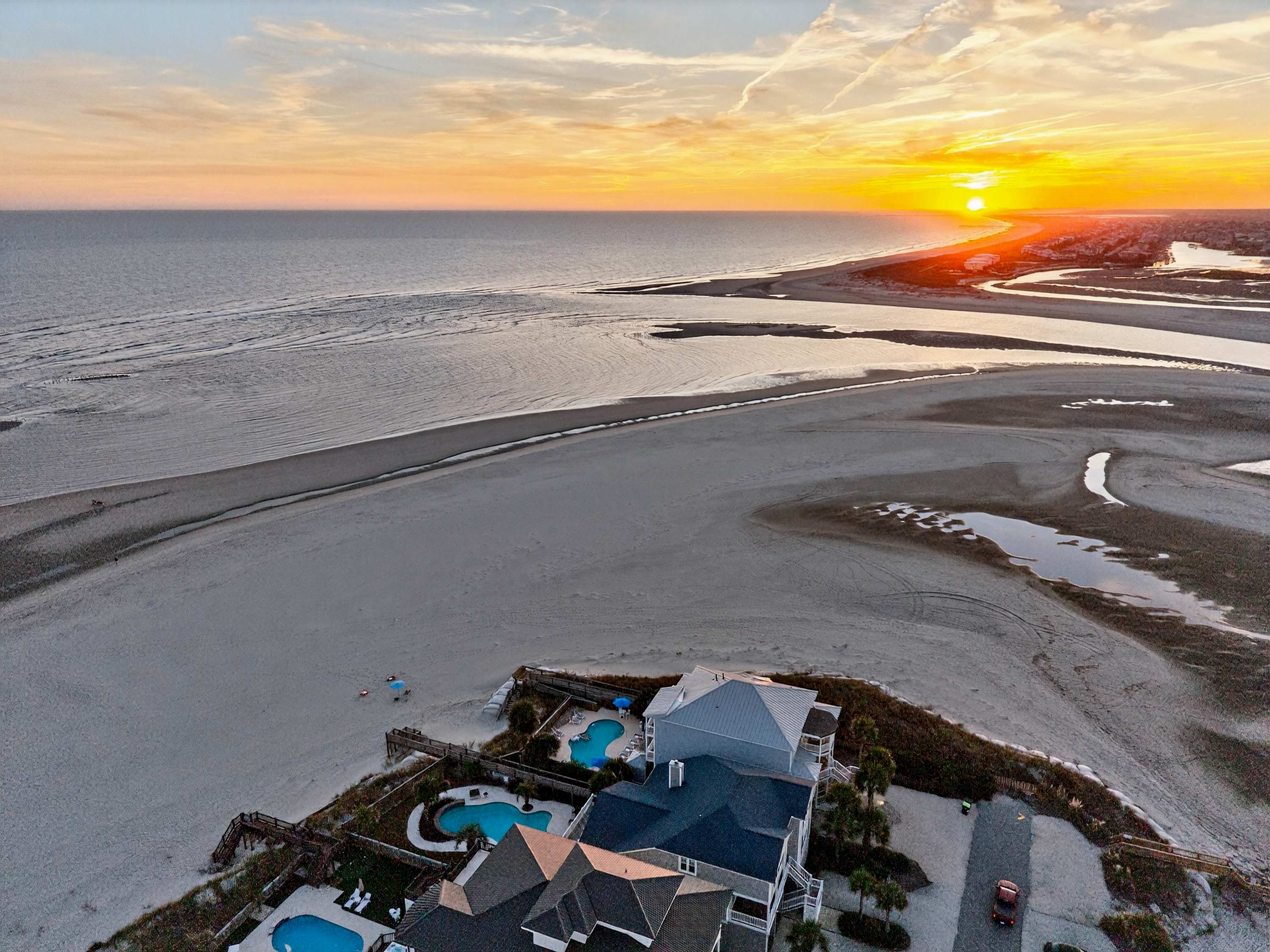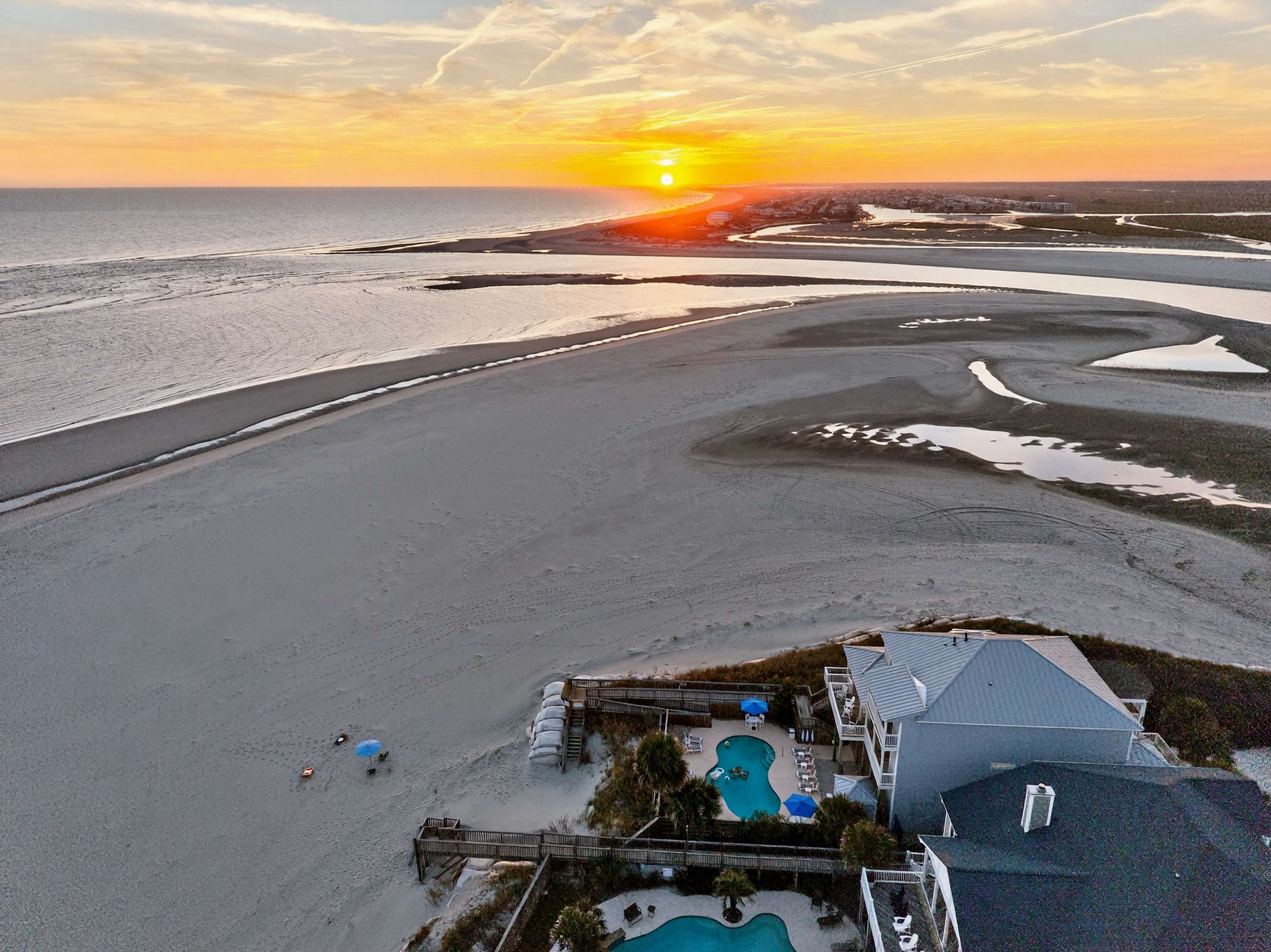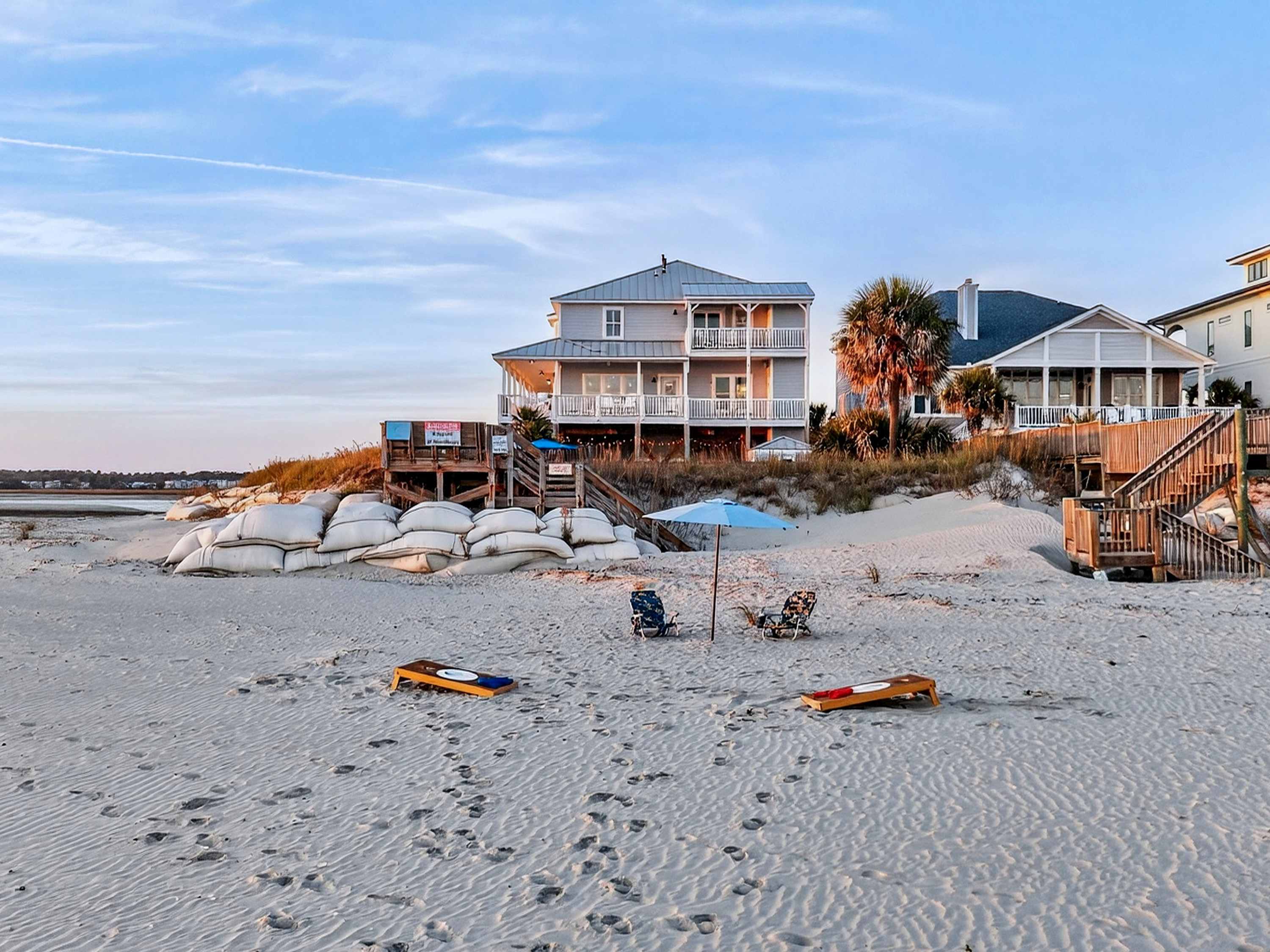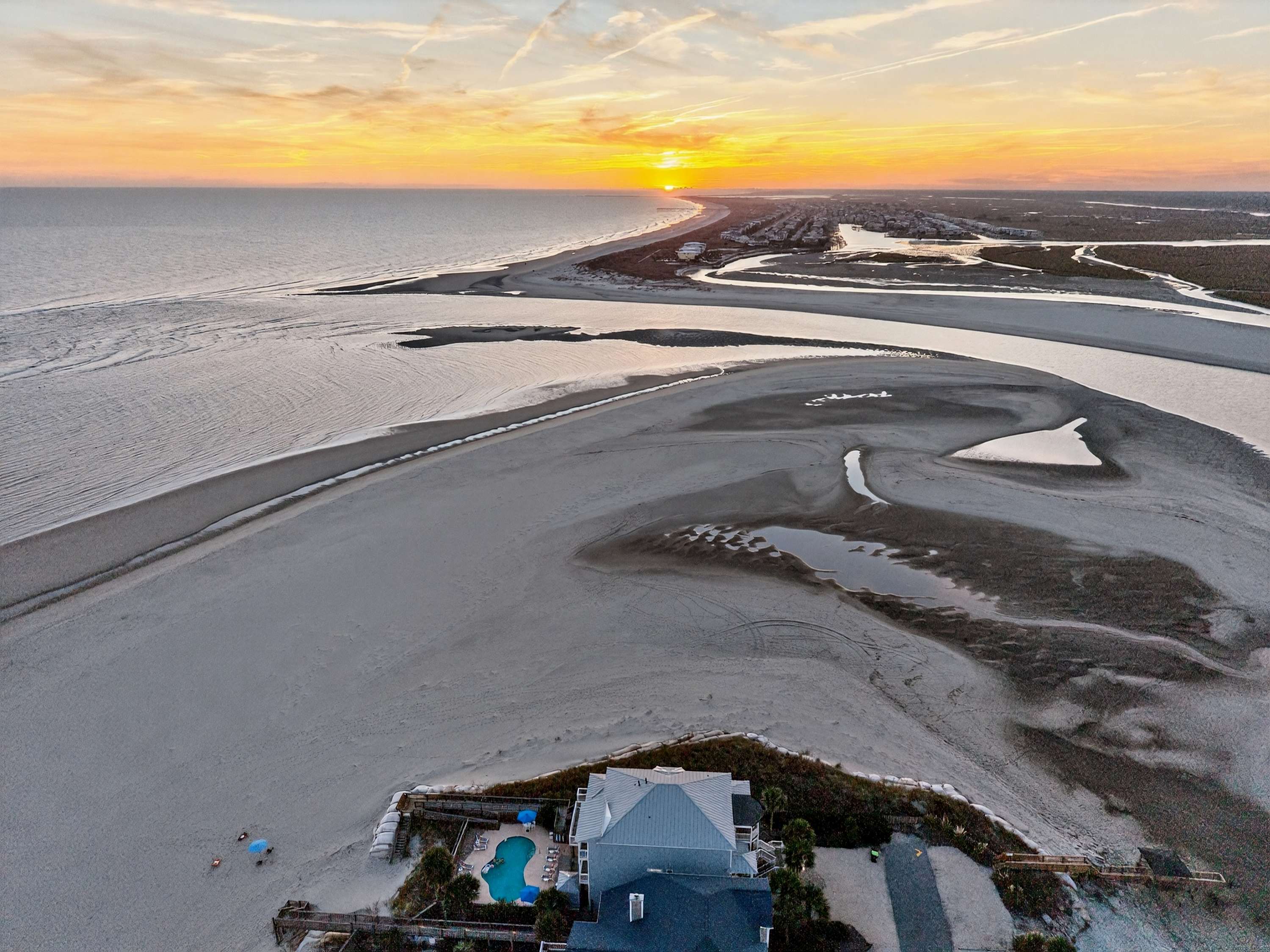 Welcome to End of the Isle with an unforgettable panoramic view! Relaxing covered porches offer spectacular sunset views. Plenty of room for everyone with large bar and dining areas, and an upstairs loft. Private dock with access to the sound on the front side of the house and a beautiful pool in the back. Step right out on to the sand and enjoy one of the most peaceful, private beaches. Located on the gated, private west side of OIB.