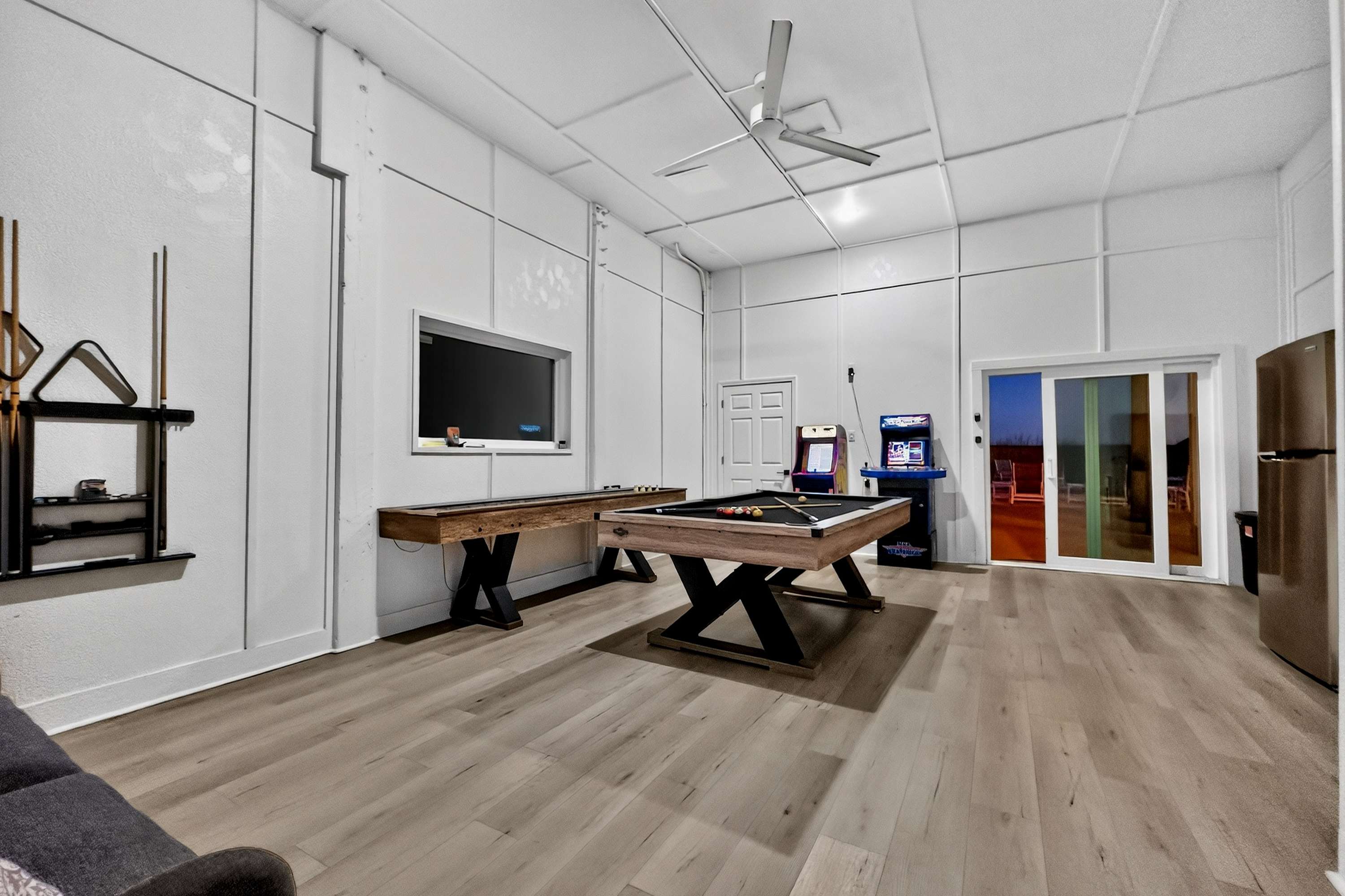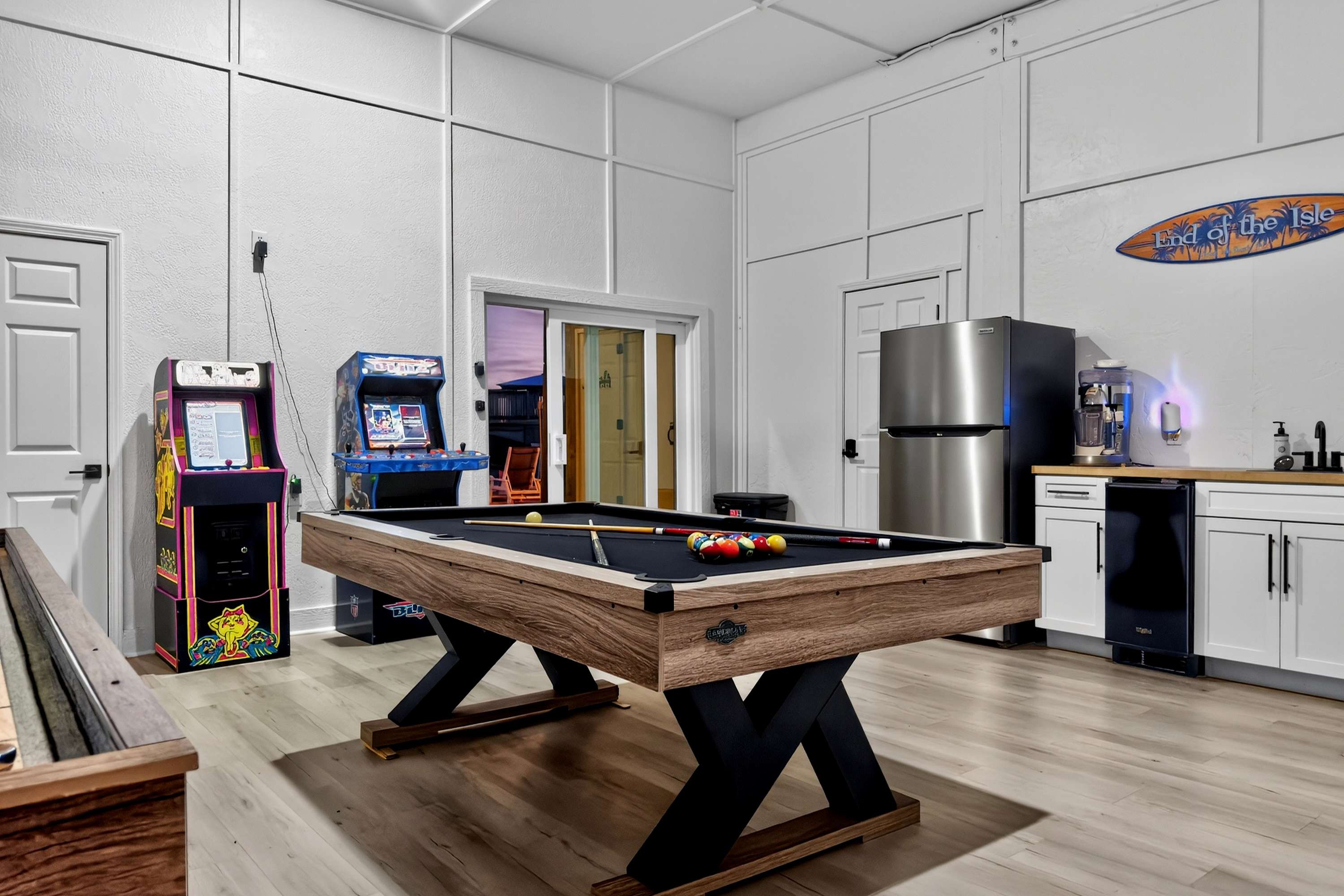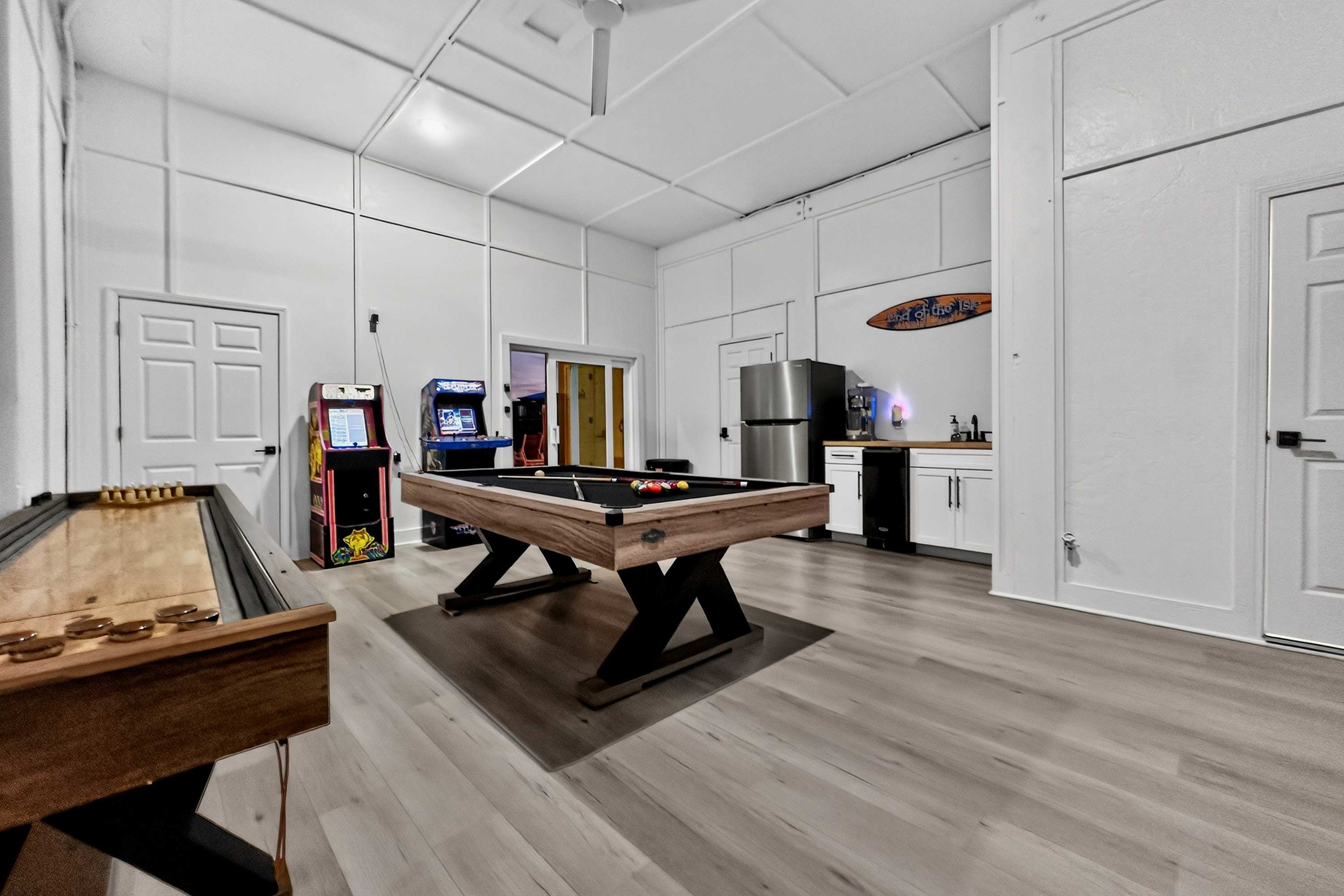 The game room on the bottom floor features all of your family favorites. This includes games to bring out to the beach, as well as a shuffle board, pool table, and arcade games, that you can find inside. We also provide 6 beach chairs for you to sit out and soak up the sun!